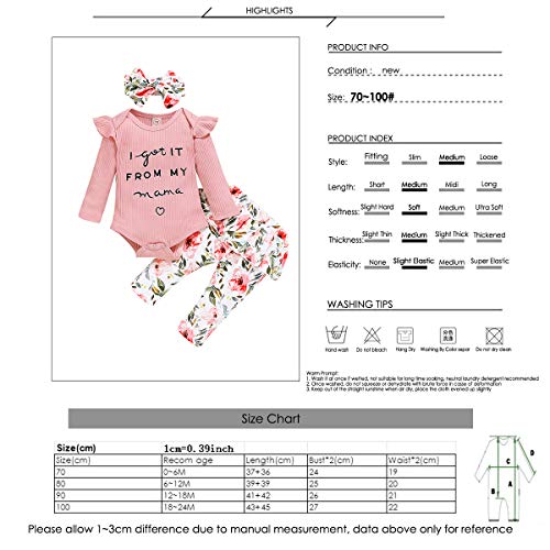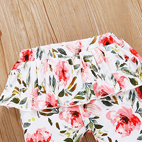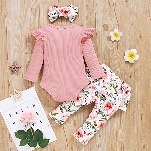 Haokaini Baby Meisjes 3Pcs Bloemen Kleding Set Brief Gedrukt Top Ruche Mouw Bodysuit Bloemen Broek Met Hoofdband…