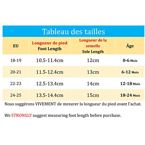 DESIGN VOOR TODDLERS’ FEET: Slip On Baby mocassins, lichtgewicht en flexibele zool bevordert natuurlijke voetbeweging en ontwikkeling zonder de groei te belemmeren. Ontwerp Perfect voor pasgeboren eerste wandelaars, kruipaars, baby’s en peuters leeftijd variëren van 3-6 maanden, 6-12 maanden, 12-18 maanden, 18-24 maanden tot 2-3jaar. Kies de maten aan de hand van de maattabel voordat u koopt. 4 Maten: 0-6 6-12 12-18 18-24 Maanden; anders kunt u schakelen of retourneren als de maten niet passen.