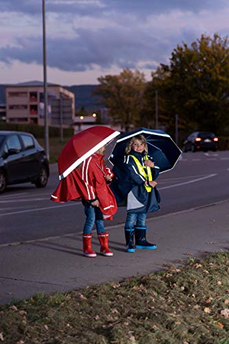 - Door de drukknoopsluiting op de regencape kan de cape veilig worden gesloten. De reflectoren op de regenkleding zorgen voor meer veiligheid in het donker of bij slecht weer.