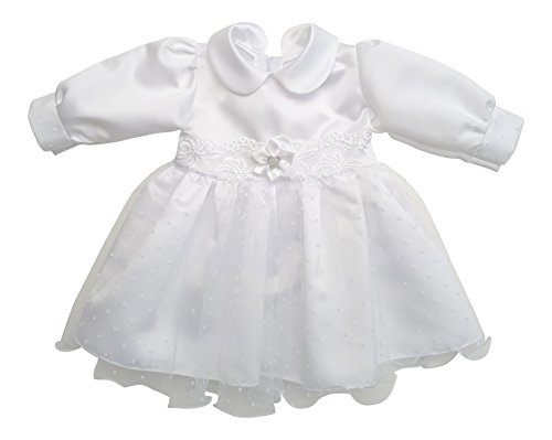 Super trendy en met liefde voor detail voor speciale gelegenheden. Een prachtige jurk van satijn en trendy tule, subtiele applicaties, elegante bolero en schattige muts. Het patroon van de punt kan enigszins afwijken van de originele afbeelding.